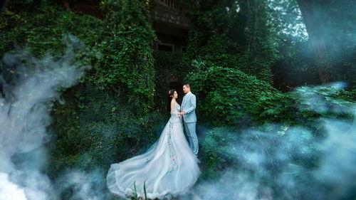 自然风光风格的工作室会运用大量的自然元素,如绿植、花卉、流水等。这些元素既能营造出清新的氛围,又能让婚纱照更具生机。